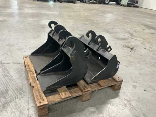 Equipped with miter boom, dozer blade, crash bar, work lighting, width-adjustable tracks, Verachtert cw00 quick coupler, including Eurograb sorting grab 35 liter capacity, 3 excavator buckets 2xdw Hydraulic function on the boom.