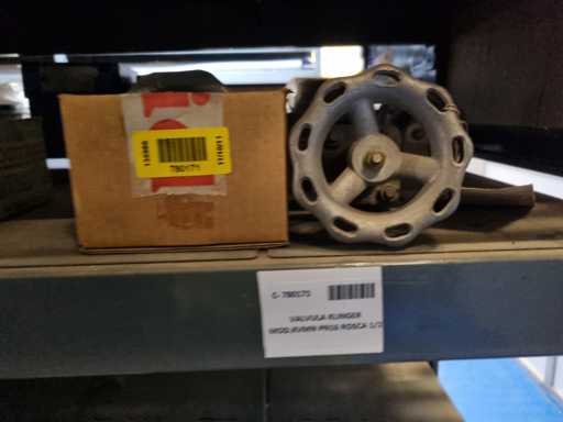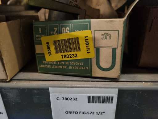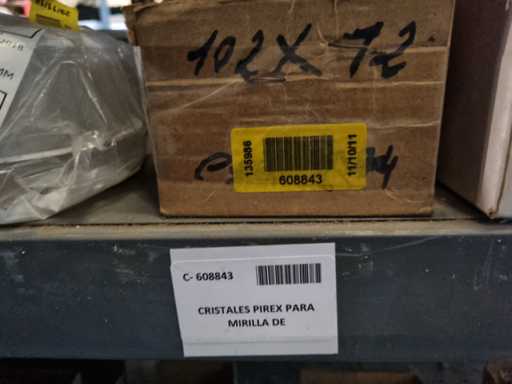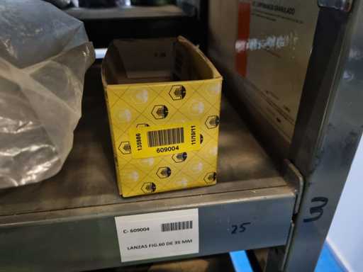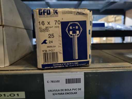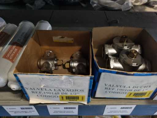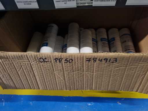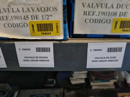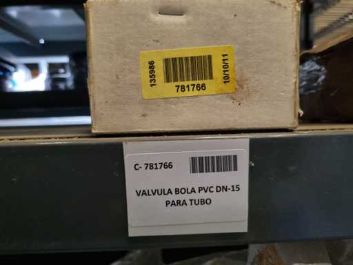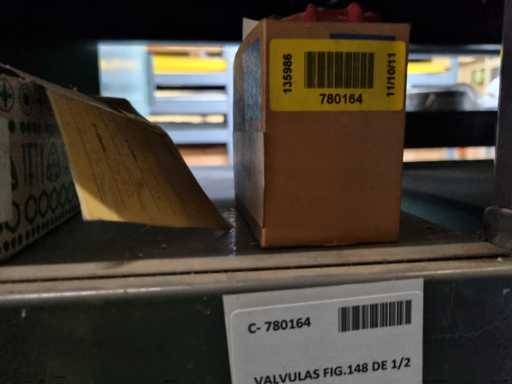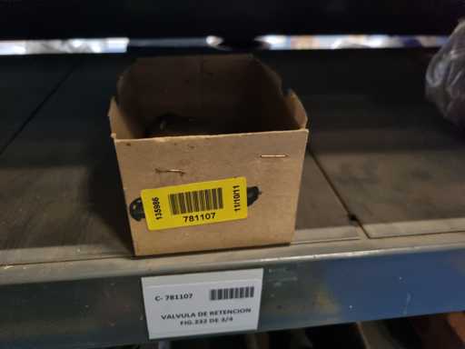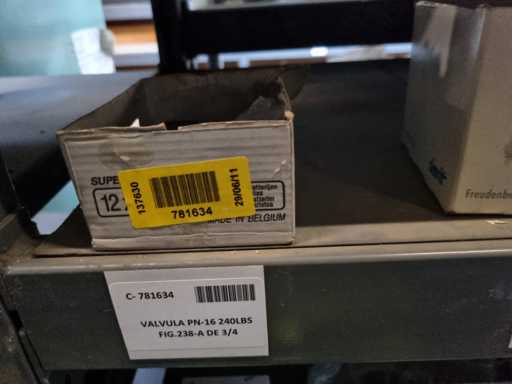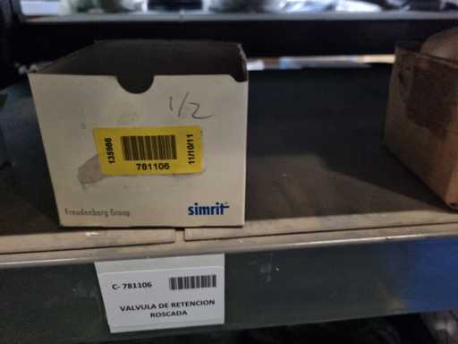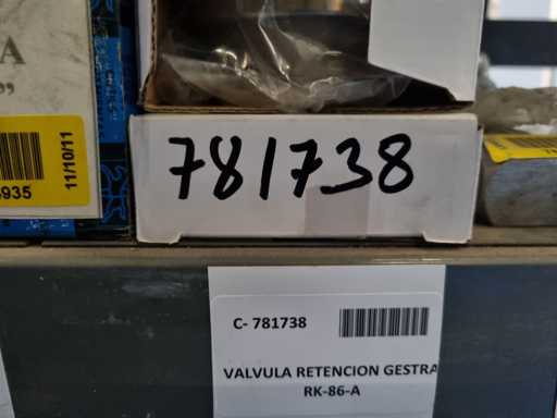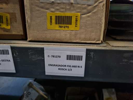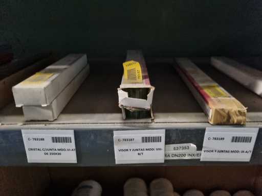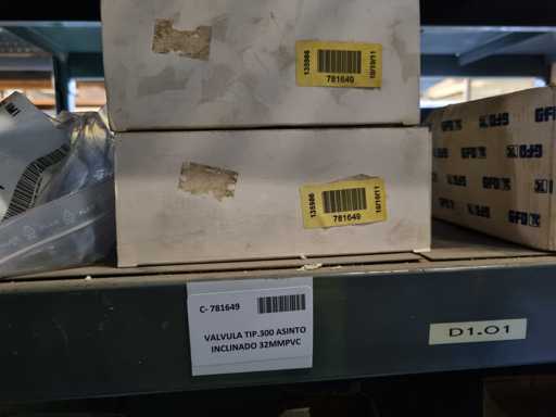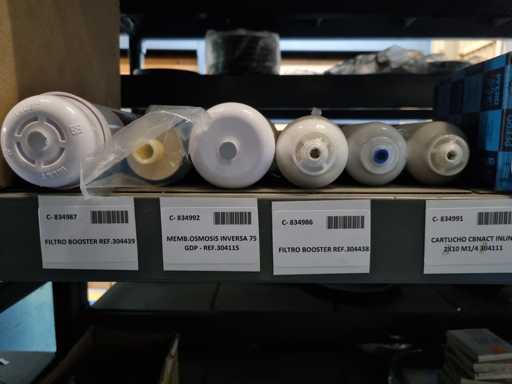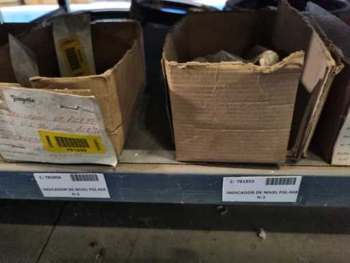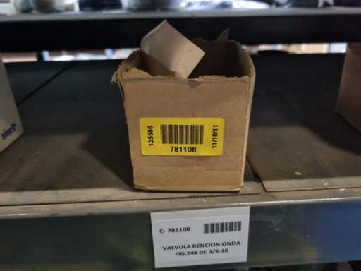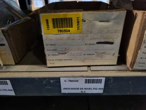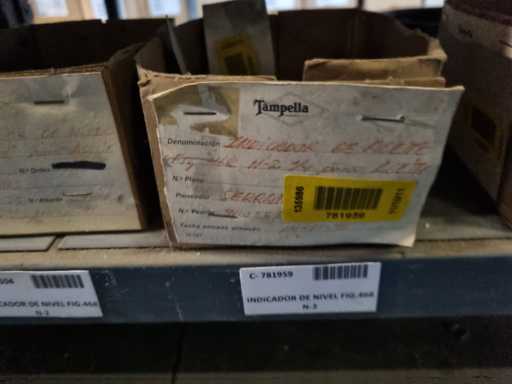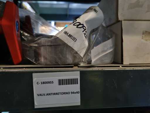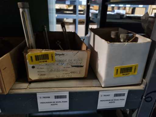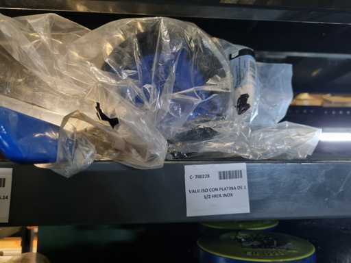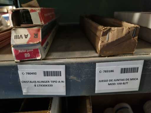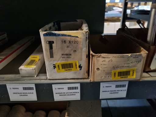 - Shelving not included: Only the spare parts and materials visible on the shelf marked in red in the first photograph are delivered. The metal structure is not part of the lot.