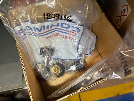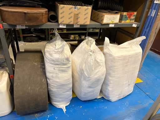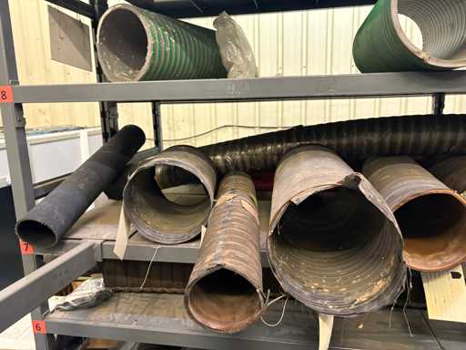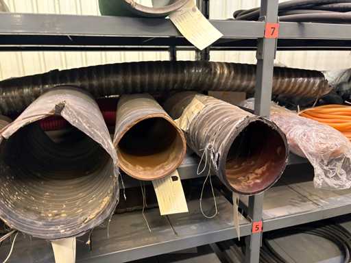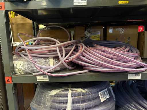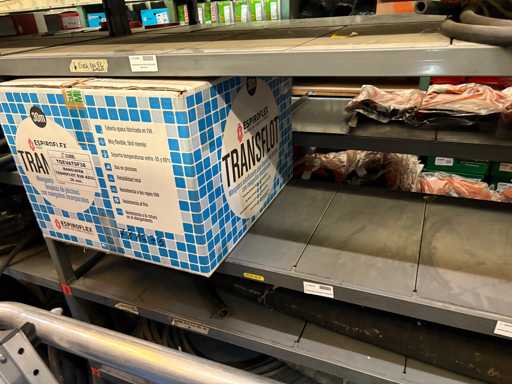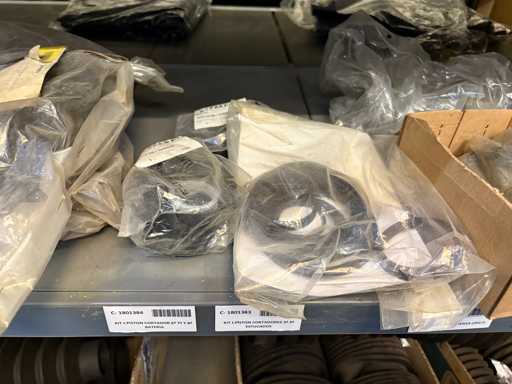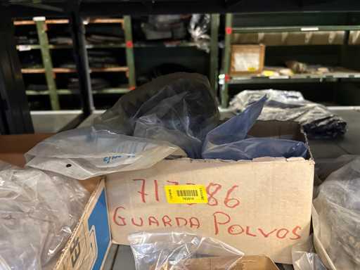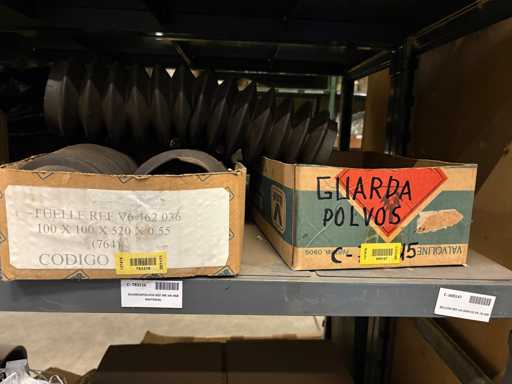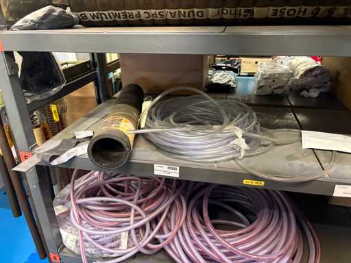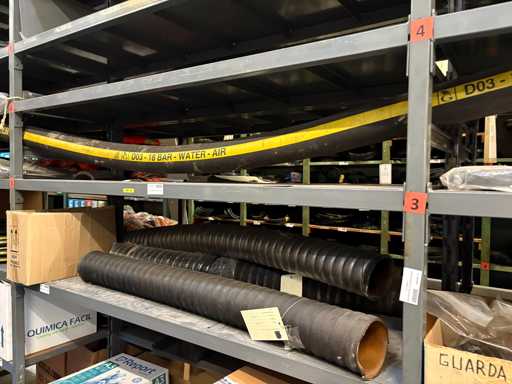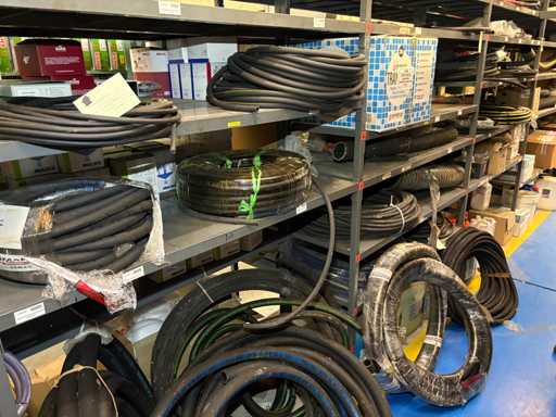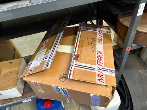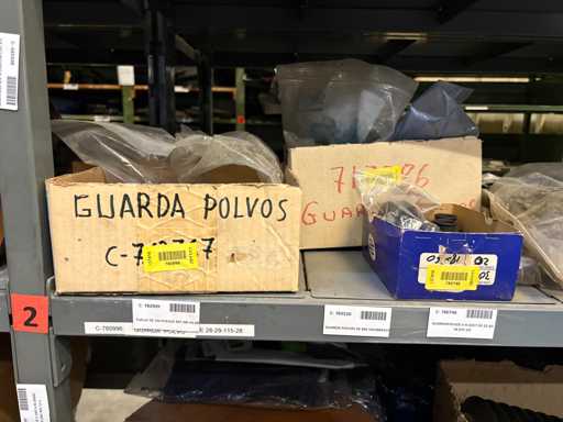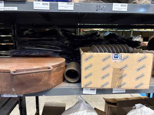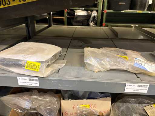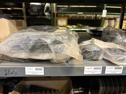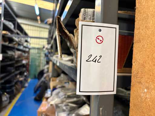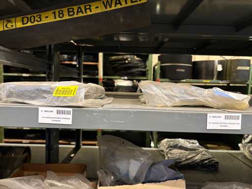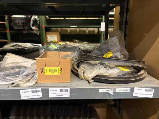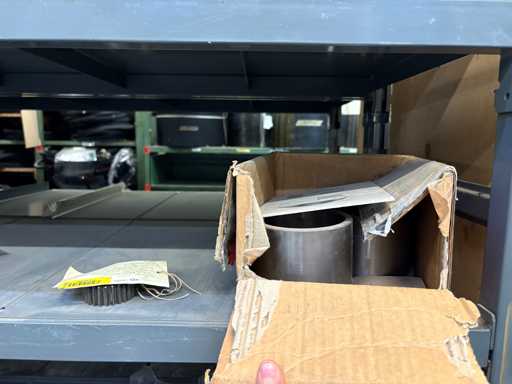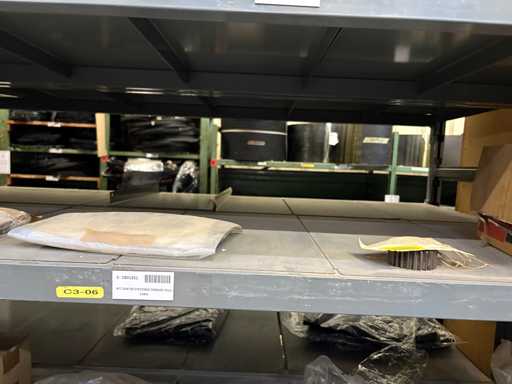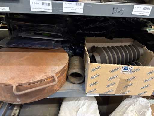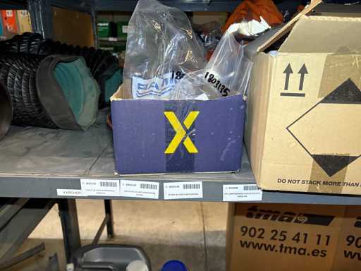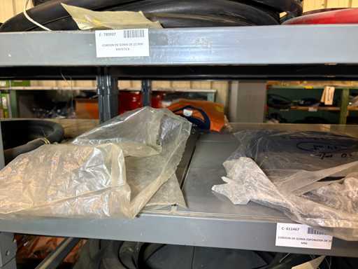 • Shelving not included: Only the spare parts and materials visible on the shelf marked in red in the first photograph are delivered. The metal structure is not part of the lot.