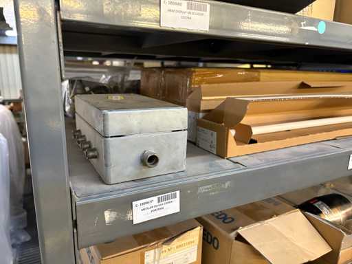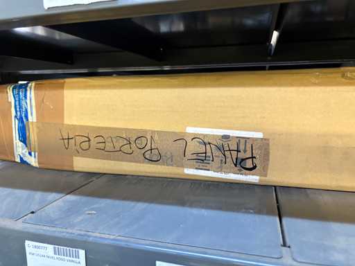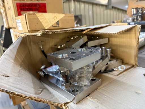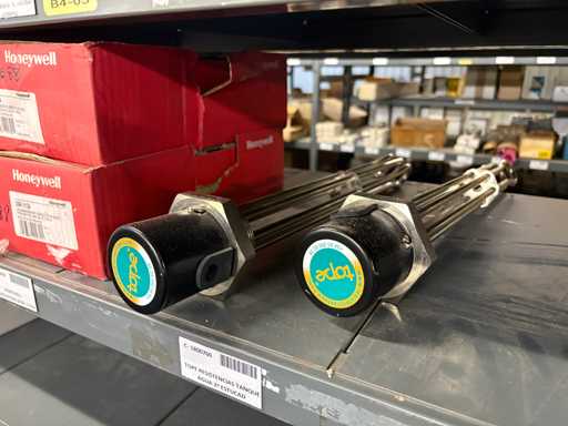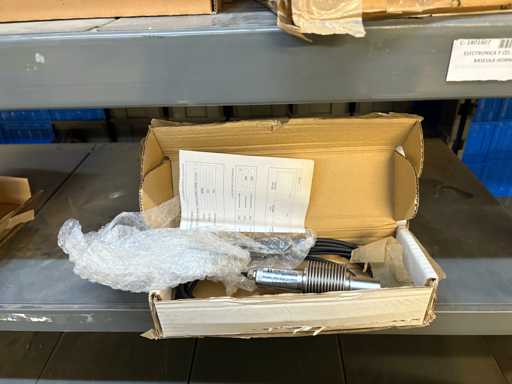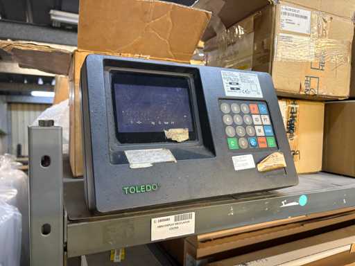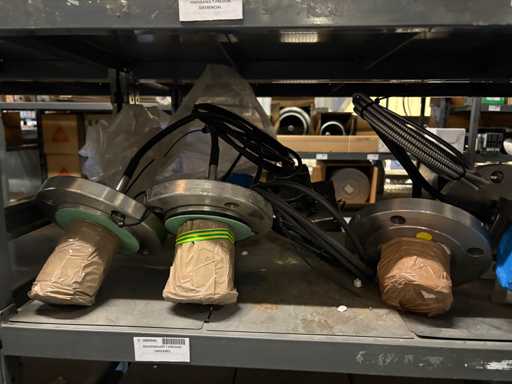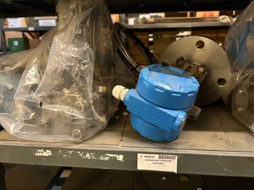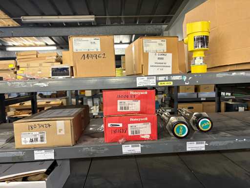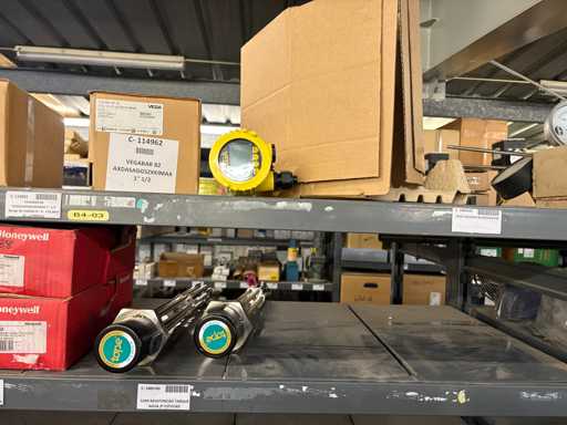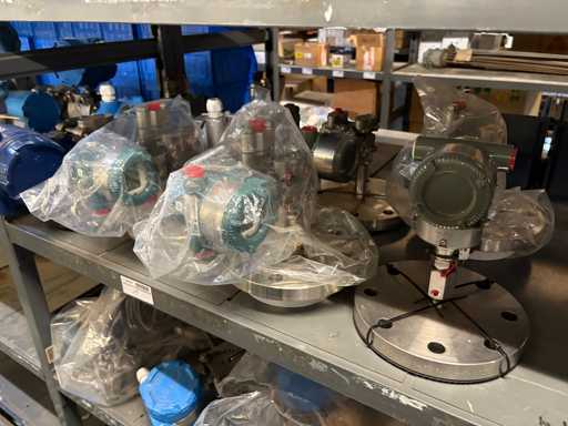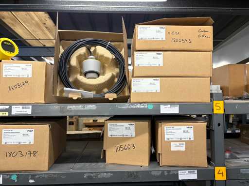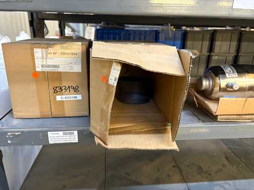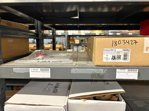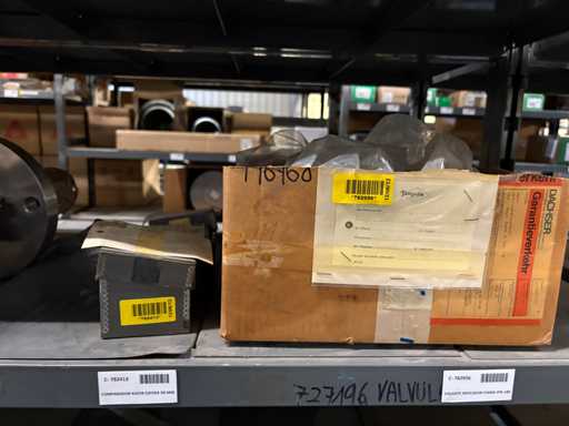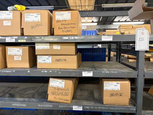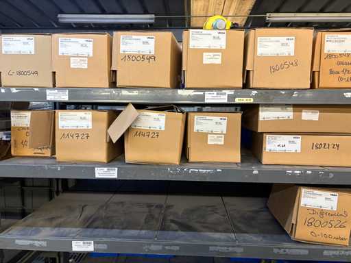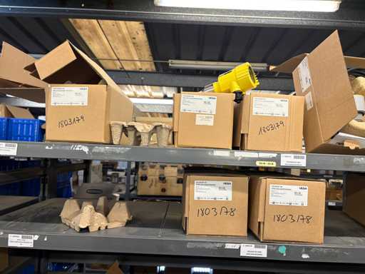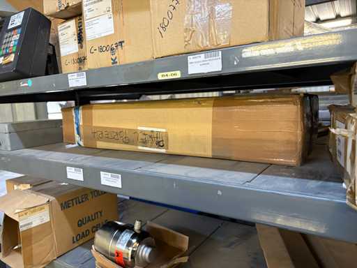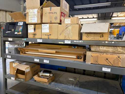 - Shelving not included: Only the spare parts and materials visible on the shelf marked in red in the first photograph are delivered. The metal structure is not part of the lot.