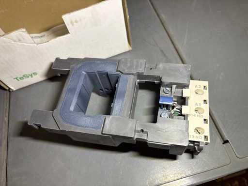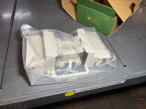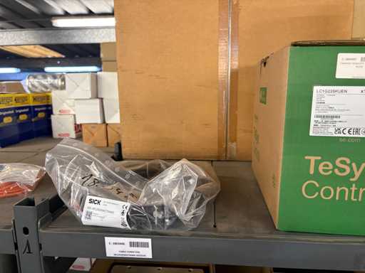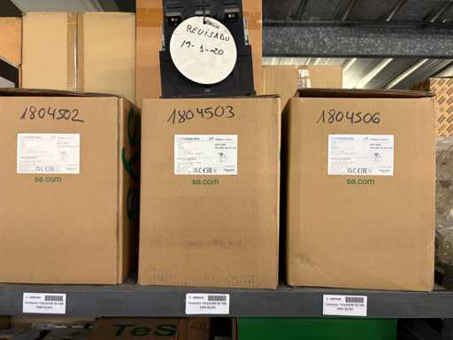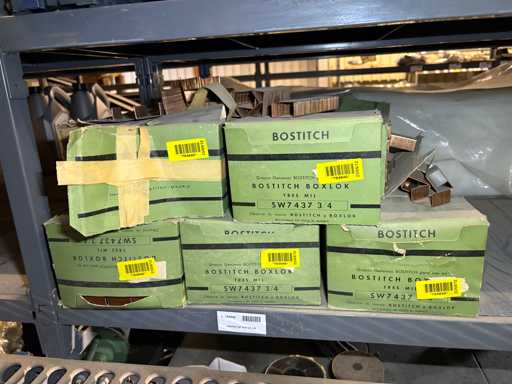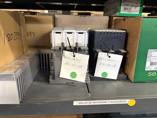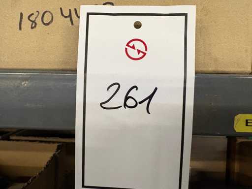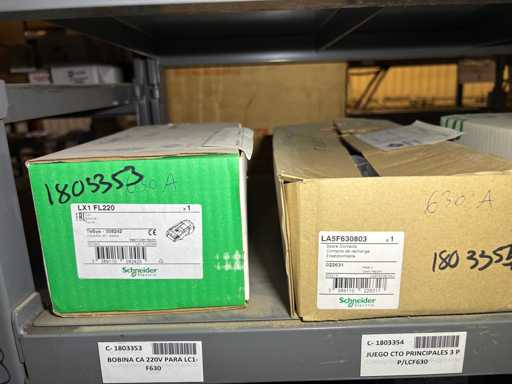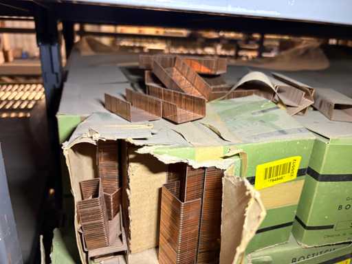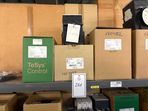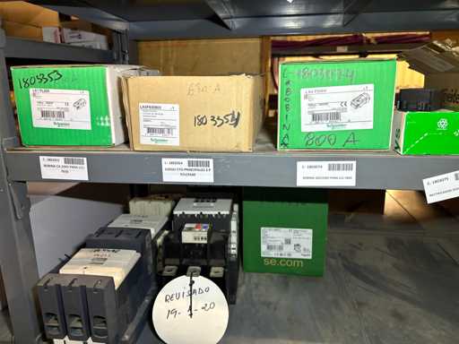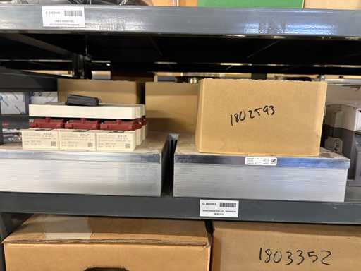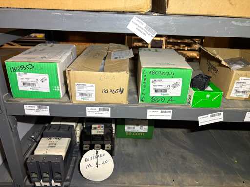 - Shelving not included: Only the spare parts and materials visible on the shelf marked in red in the first photograph are delivered. The metal structure is not part of the lot.