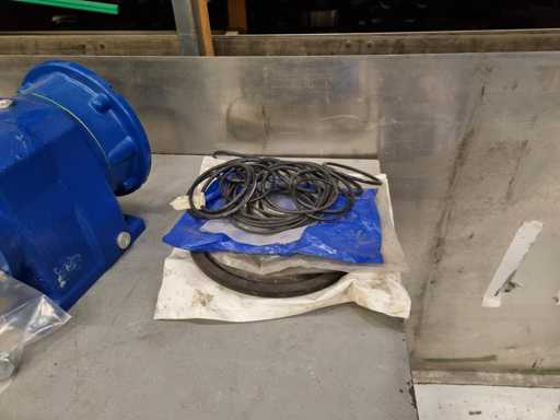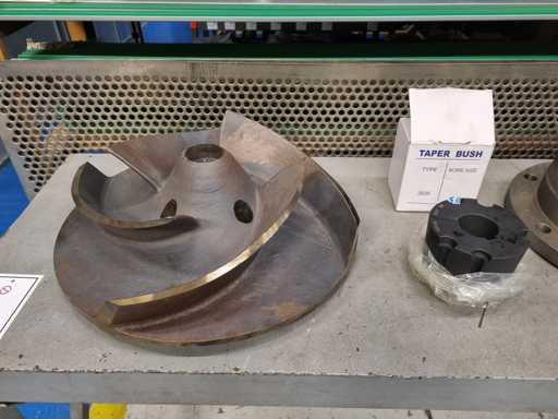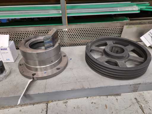 - Shelving not included: Only the spare parts and materials visible on the shelf marked in red in the first photograph are delivered. The metal structure is not part of the lot.