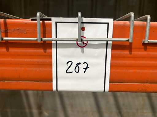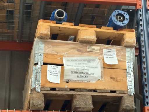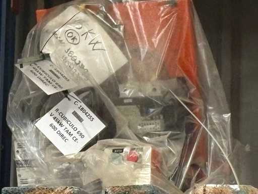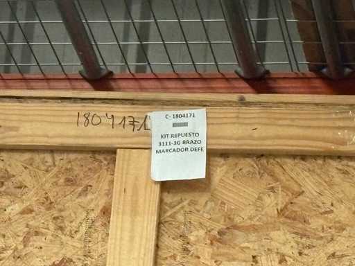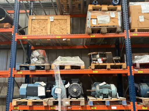 - Shelving not included: Only the spare parts and materials visible on the shelf marked in red in the first photograph are delivered. The metal structure is not part of the lot.