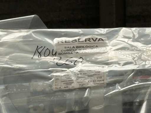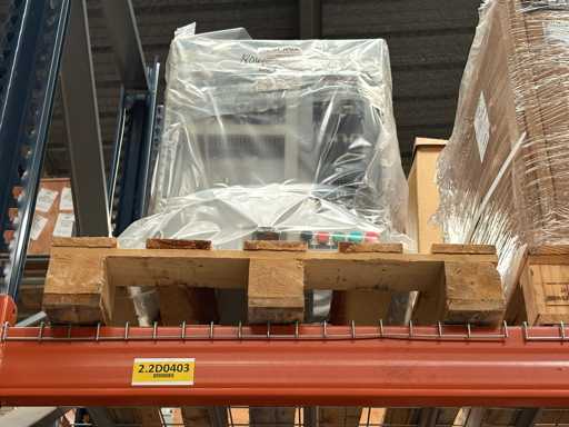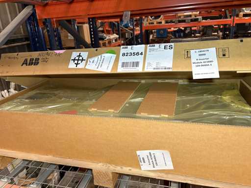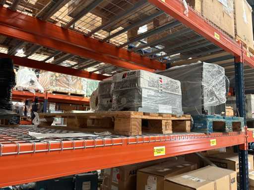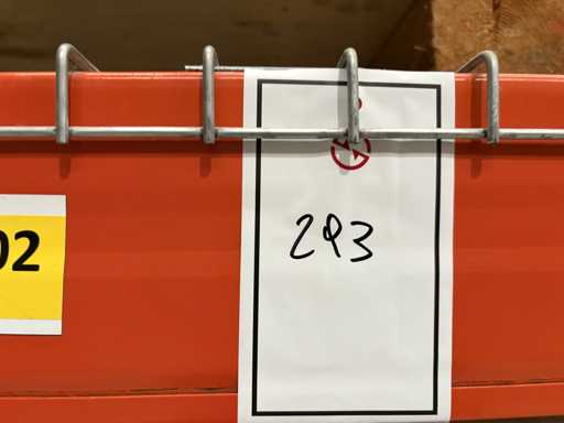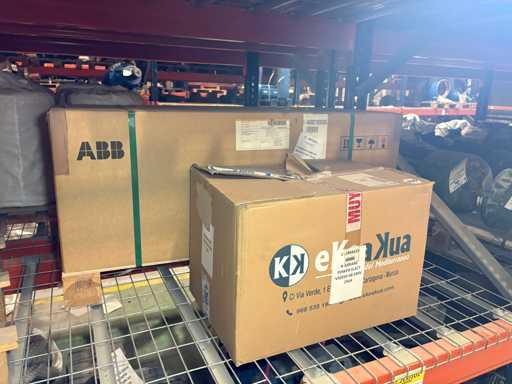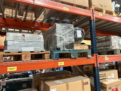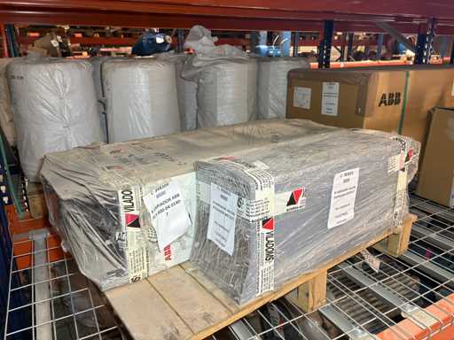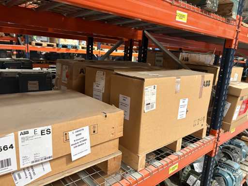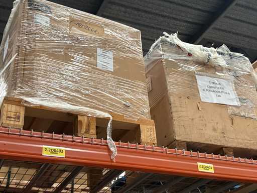 - Shelving not included: Only the spare parts and materials visible on the shelf marked in red in the first photograph are delivered. The metal structure is not part of the lot.