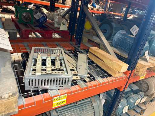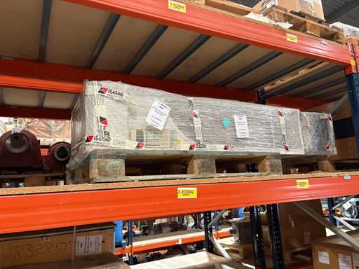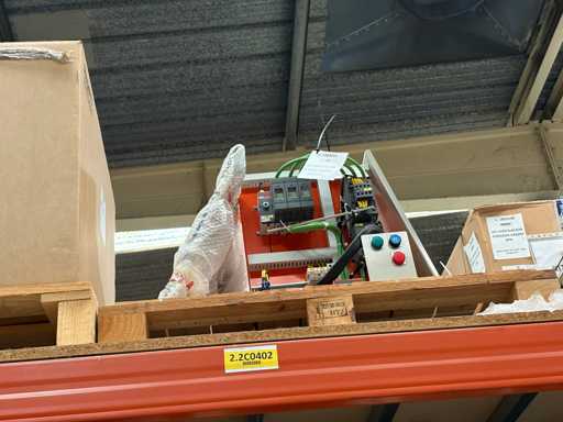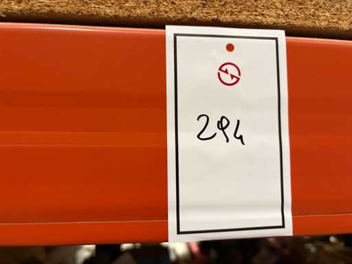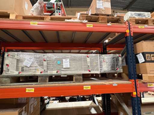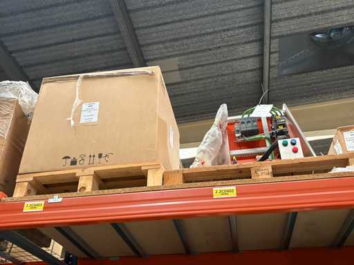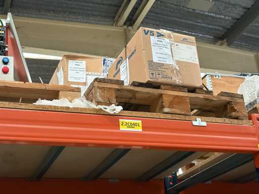• Shelving not included: Only the spare parts and materials visible on the shelf marked in red in the first photograph are delivered. The metal structure is not part of the lot.