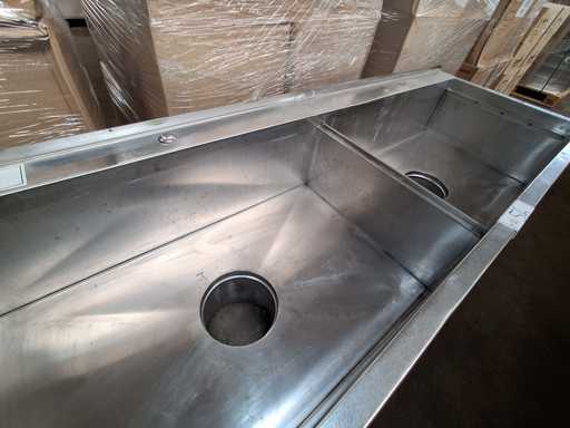 Stainless Steel Double Sink with 2 Drains and Backsplash
