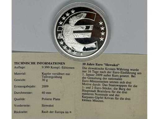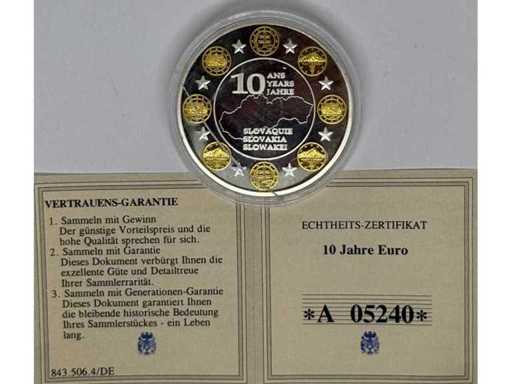 10 Years Euro – Slovakia Commemorative Medal (2009) – Silver Plated with Partial Gold Plating