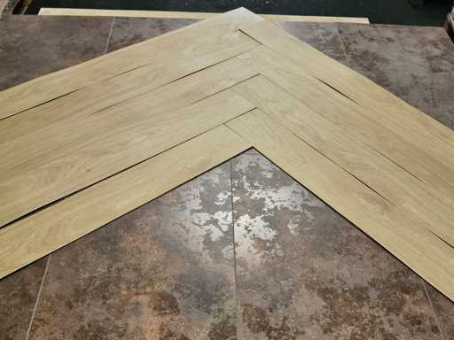 PVC dryback floor, herringbone, splash water resistant, needs to be glued, frost resistant, ideal for underfloor heating, scratch and wear resistant, anti slip, top layer 0.55 mm, easy to clean, 39 packs of 2.78 m2