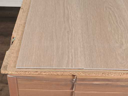 Quality pvc click plank floor, equipped with XPS underlayment, floor consists of 4 mm plus 1 mm XPS underlayment, equipped with solid polymer core (SPC), stable floor does not require aclimatization for installation, acoustically damping, ideal for use in combination with underfloor heating, scratch-resistant and wear-resistant, pet-friendly, low-maintenance, water resistant, frost-resistant, anti-slip, 46 packs of 2,503 m2