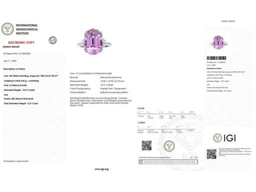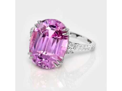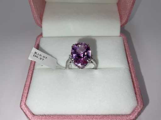 14 Carat white gold ring with 10.57 ct Purplish Pink diamond