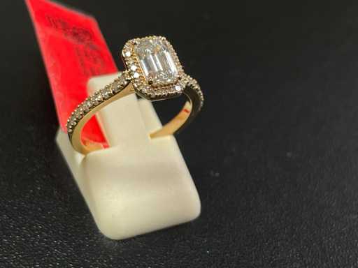 18k yellow gold hello and pave ring with 1.23 ct emerald diamond - E/VVS