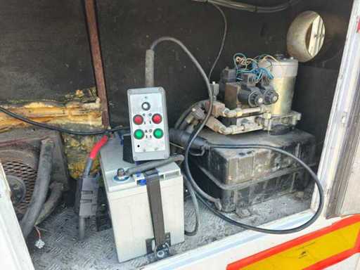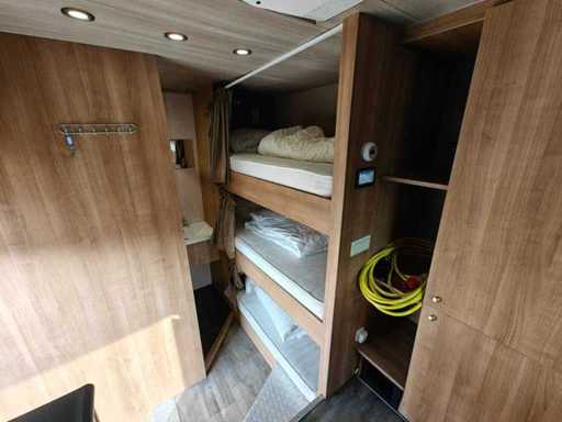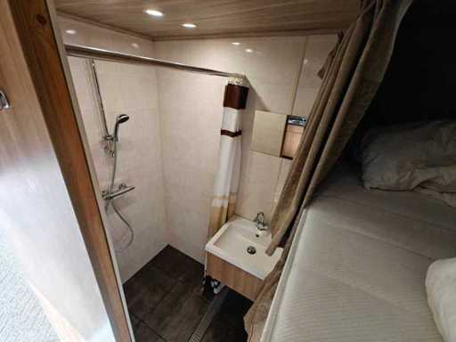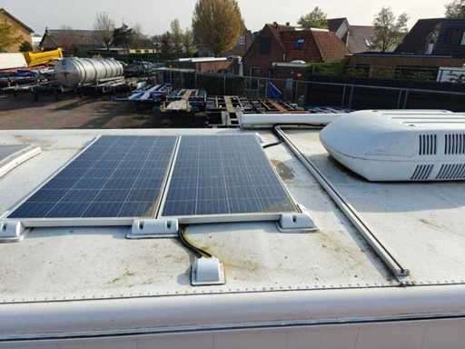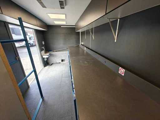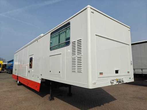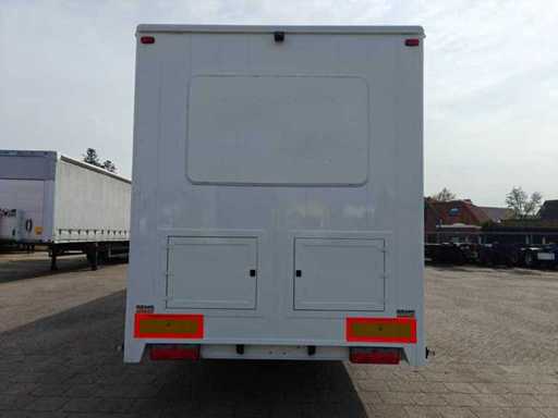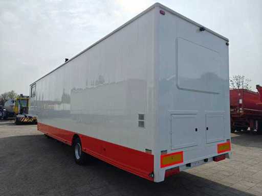 Equipped with 1-Axis BPW, drum brakes, leaf suspension, motorsport trailer, number of beds: 4, shower room, elec. hob, extractor hood, washbasins with mixer taps, 2 refrigerators (recently renewed), combi microwave, TV, sitting area with tables, div. storage cupboards, air conditioning, dim. living space: 665x235x195 cm, digital thermostat for heating, group box, wall sockets, digital panel for power supply, "Vaillant" turboMAG geyser (recently installed), 4x solar panel (recently installed), "Victron" Energy smart solar controller, "Victron" energy Quattro inverter, "Victron" energy storage batteries, diesel generator SDMO DS 27M 20.8 kva, shore power connection, articulated arm awnings with support legs (manual operation), clean and dirty water tank, 2 hydraulic support legs, workshop equipment: Dim. workshop: 565x237x234 cm, air conditioning, LED lighting, toolboxes, wall sockets, storage cupboards, LED lighting, sink, chemical toilet, Recently repainted, own weight: 3130 kg, load capacity: 10870 kg, 1-axle