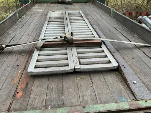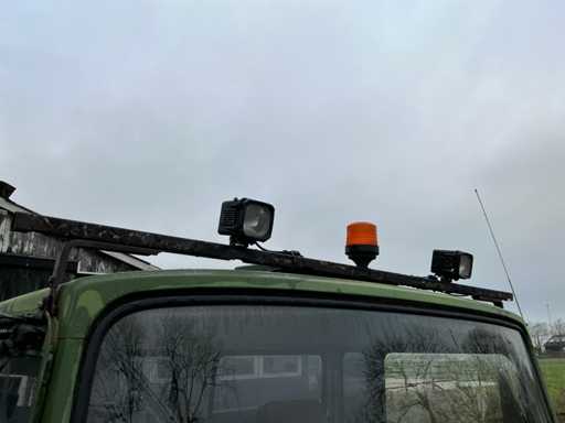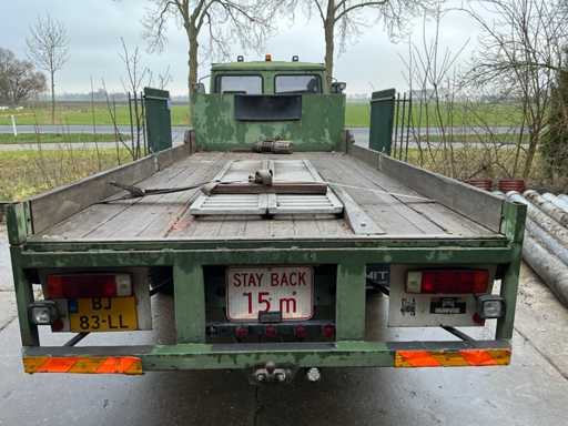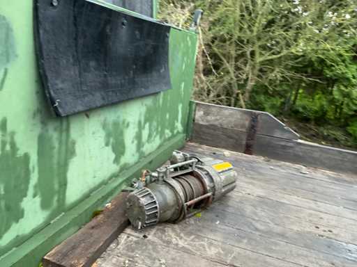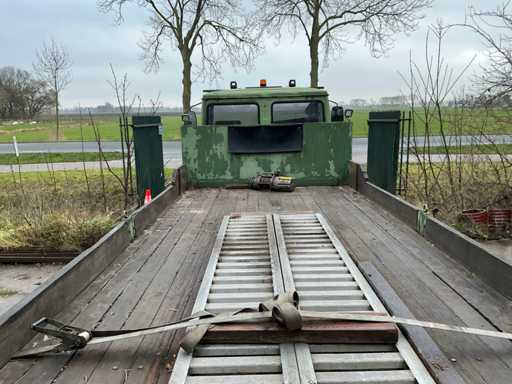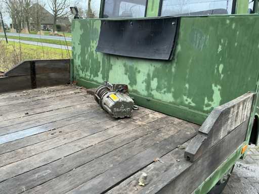 Max mass 7490kg., loading box size approx. 5400x2300mm. Includes ramps and electric winch, exhaust defective