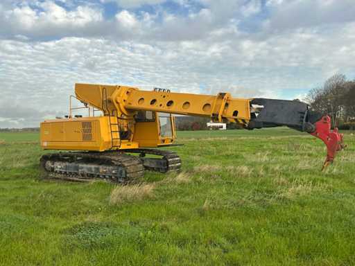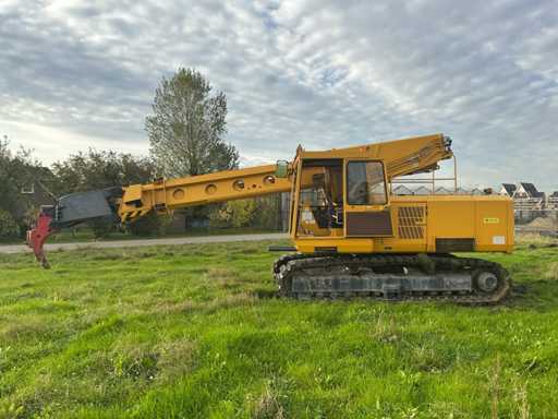 EWK TR2212 crawler excavator from 1994, produced by Eisenwerke Kaiserslautern GmbH. Equipped with Deutz diesel engine with six cylinders and a power of 174 kW. The machine has an operating weight of 23 500 kg, is equipped with a cab and excavator bucket, and has a boom length of 10 500 mm. Maximum digging depth 6,700 mm and maximum working range 11,000 mm. Track width 600 mm, read hours 18 111. Overall dimensions 10 800 × 3 000 × 3 300 mm. Serial number 027, CE marked. Includes CW40 bucket quick coupler and spare sliding mast
