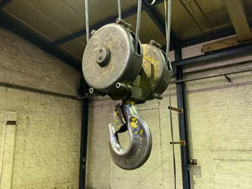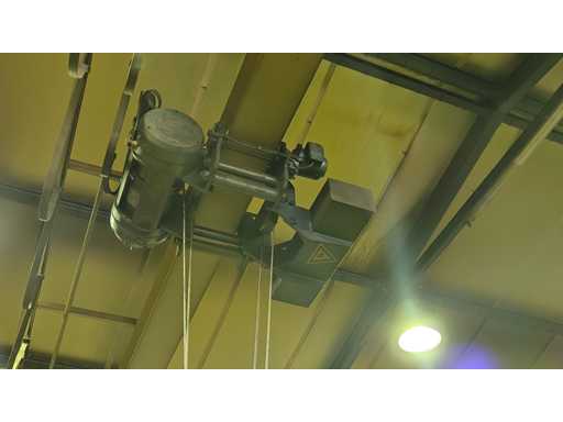 The span is 12450 mm equipped with profile layer 300 x 400 and STAHL cable hoist 3000 kg. with 4 rungs Ø 10 cable, hook STAHL P.2.5.