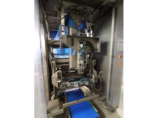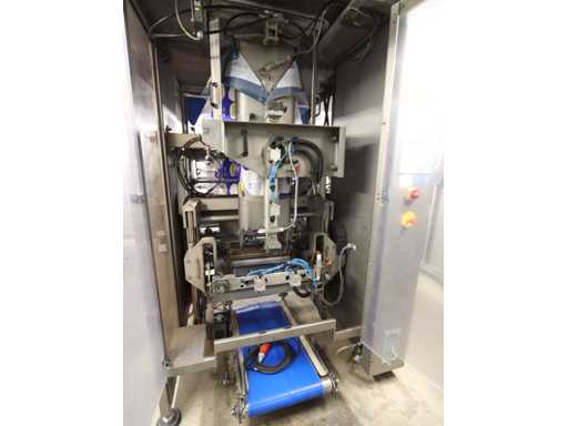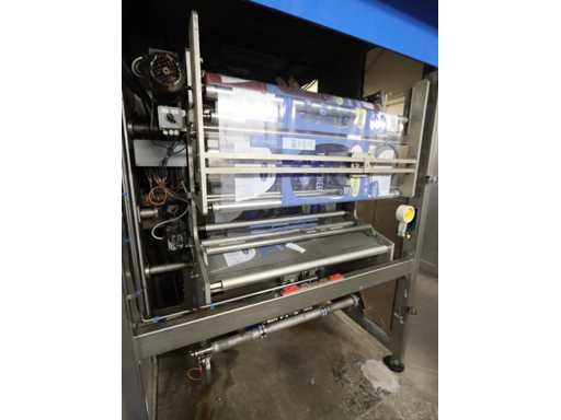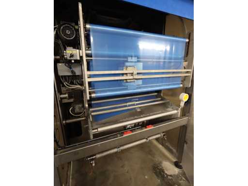 Film roll width 1000 mm, equipped with "Marken imaje" inkjet coding unit and underrunning conveyor belt