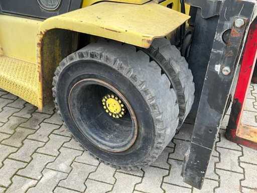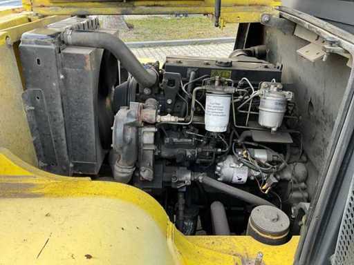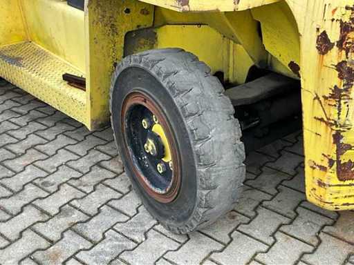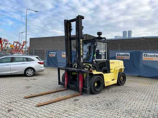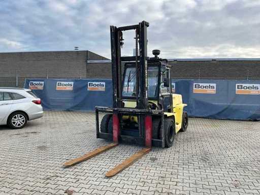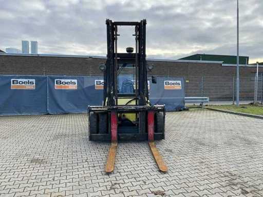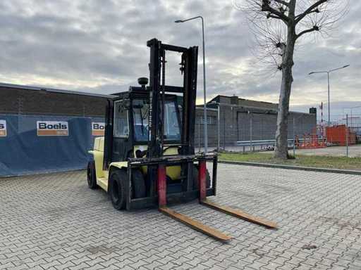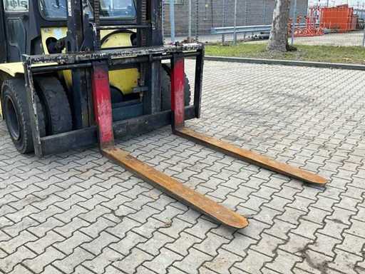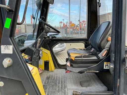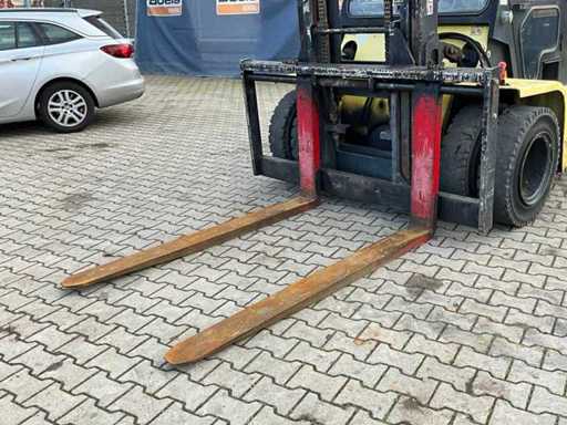 closed cab; fork width 150 mm; maximum width over the forks 1900 mm; 2x additional hydraulic connections; powered by Perkins 4-cylinder diesel engine; 61.5 kW; double tires in the front; work lighting for; working condition;