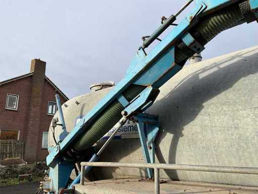 equipped with hydraulically adjustable drawbar, 8" suction arm, tandem chassis, flow meter, injector with hydraulically driven distributor, hydraulically foldable, working width injector 5500 mm