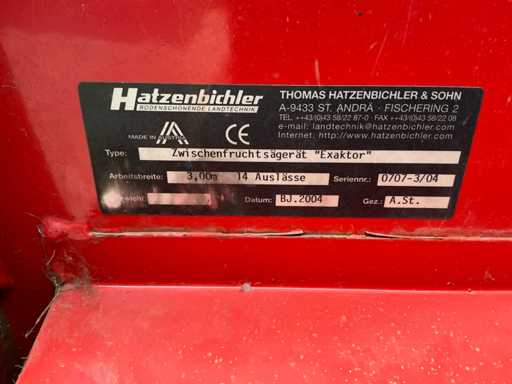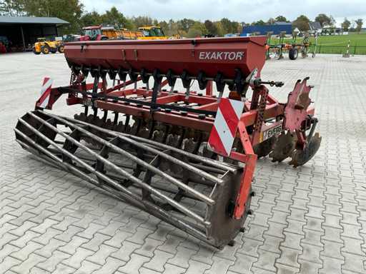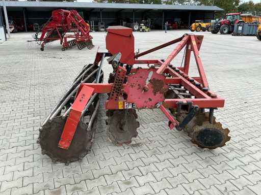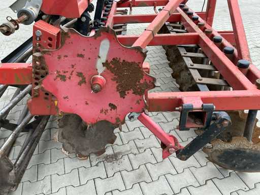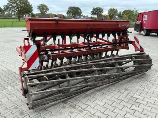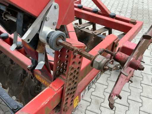 Equipped with: Evers Vario-disk Skyros V300.24 discs 500mm, crumbling roller, surface-mounted seeder brand Hatzenbichler Exaktor, 14 outlets, year of construction 2004, 3000mm, lighting and marking signs, 3 point suspension, mechanical adjustable angle discs.