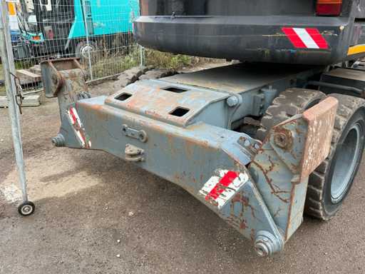 Equipped with: Hydraulic outriggers, CW30 hydraulic quick coupler, verachters: vrg-20N (860mm), hydraulic functions on boom, axle lock, two-piece boom, lights, tow bar, solid tires.