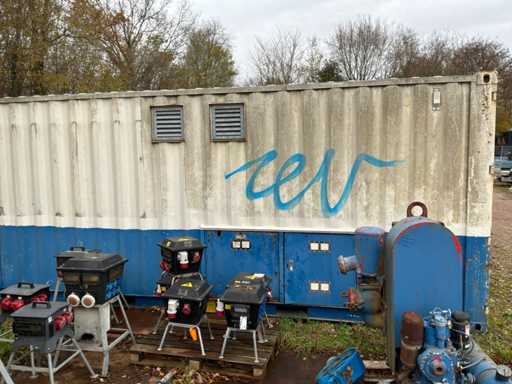 Contents are included, one half of the container is set up as a workshop, the other half is a canteen.