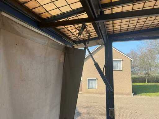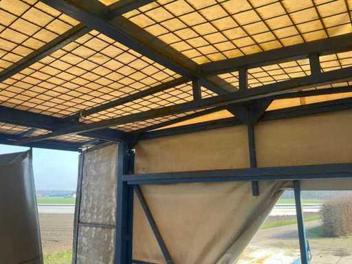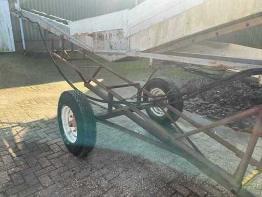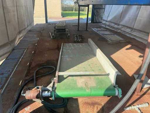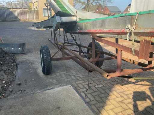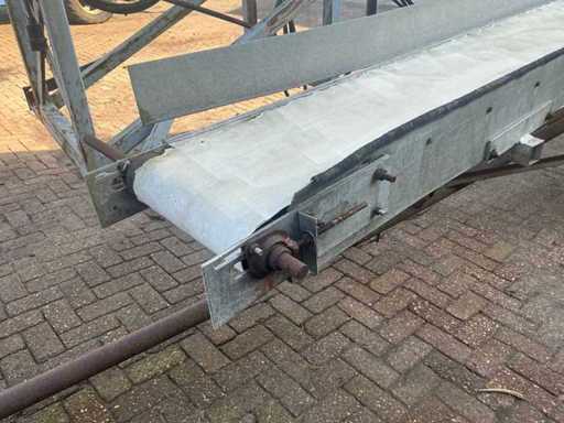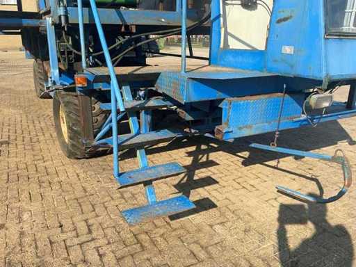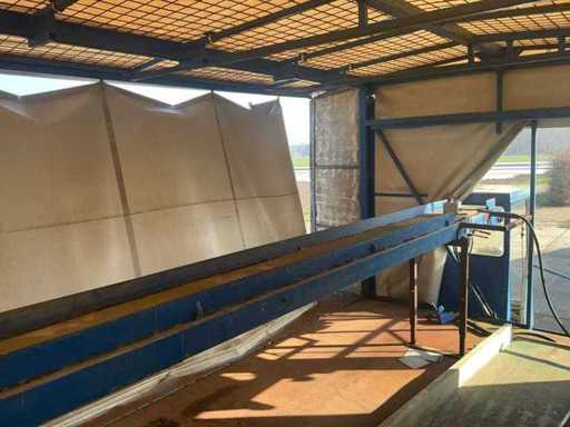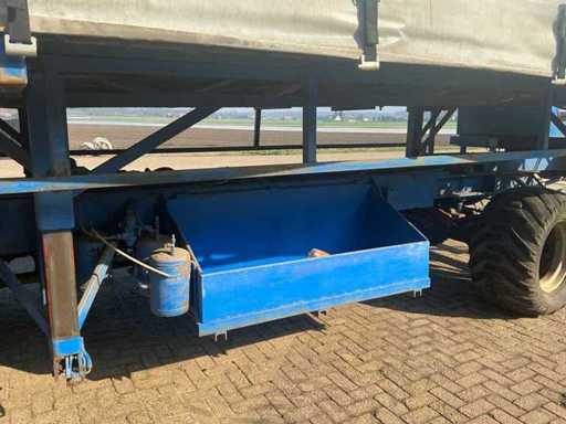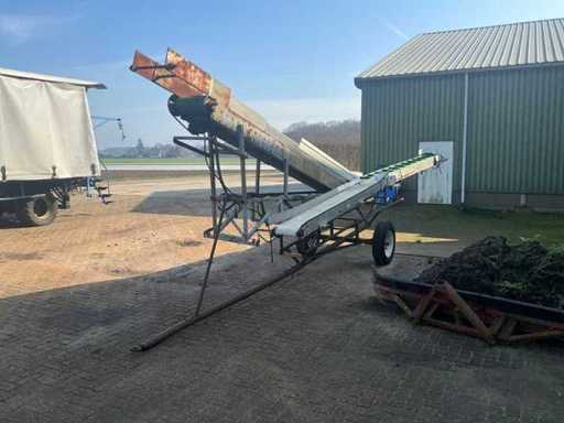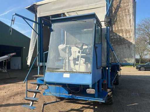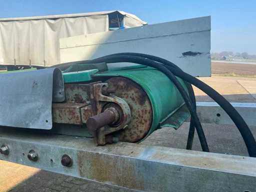 Equipped with: cabin, hydrostat, 4 wheel steered, 4 cylinder air-cooled deutz engine, frequency controlled harvesting belt, hydraulically folding side valves, tarpaulins, hydraulic tailgate. Machine height adjustable 500mm. Including harvesting belt 300mm wide, 9000mm long. Tire size 550/45-22.5.