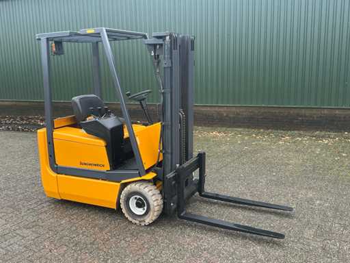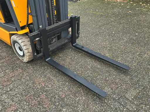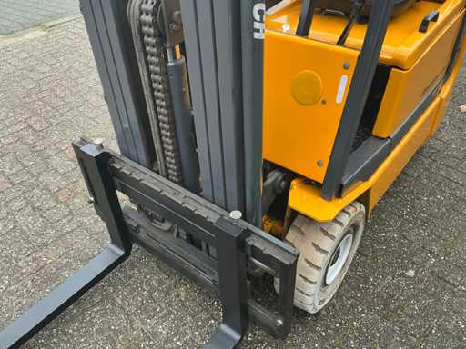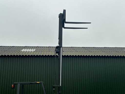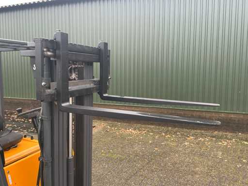 Equipped with non-marking straps. Battery 24v tested 75%. Lifts and steers, but does not drive.