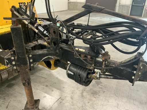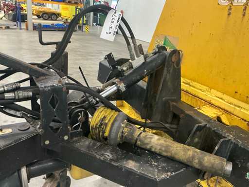 Equipped with hydraulic sideshift, high tipping container, hydraulic height adjustment, hydraulic brakes, action frame with 4 LED lights, PTO driven flail mower and license plate registration.