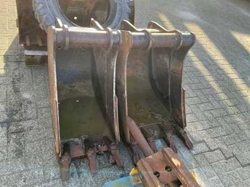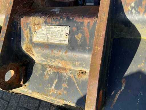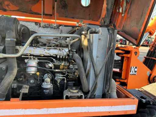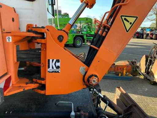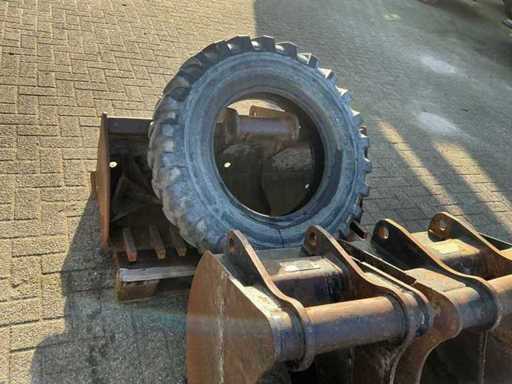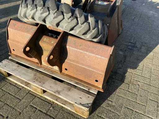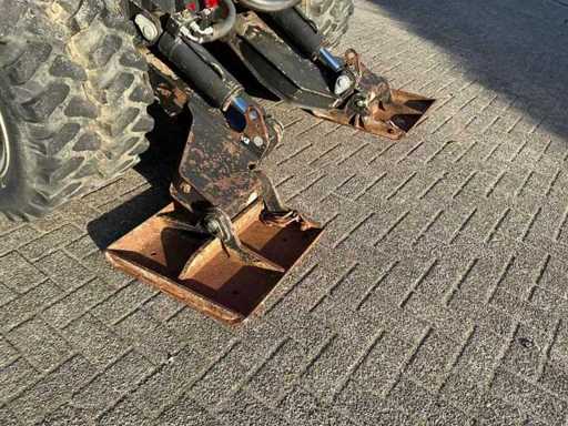 Equipped with outriggers, extra hydraulic connections, tilting bucket 130cm. Includes 1x 125cm tooth tray1x 60cm tooth tray, 1x 45cm tooth tray, hydraulic demolition hammer, hydraulic squeeze tray and 1x spare tire.