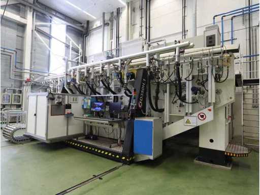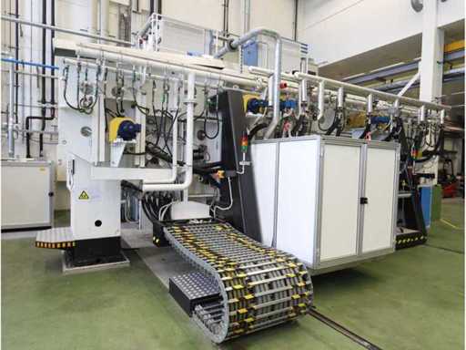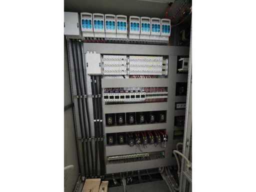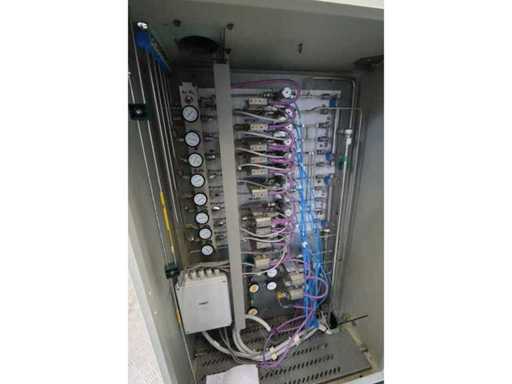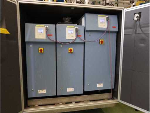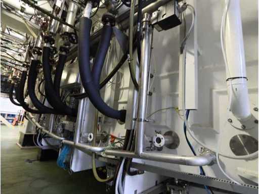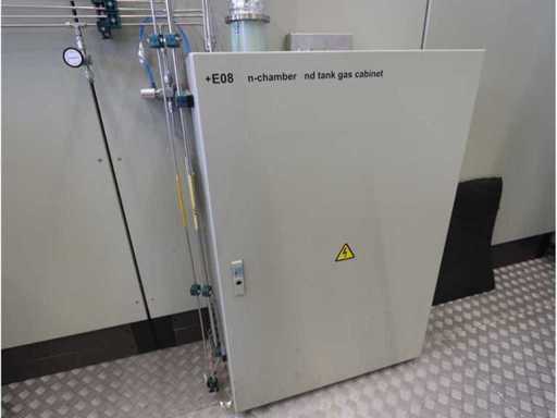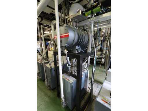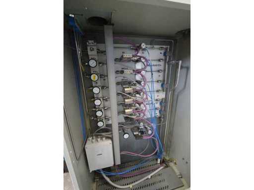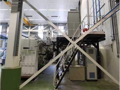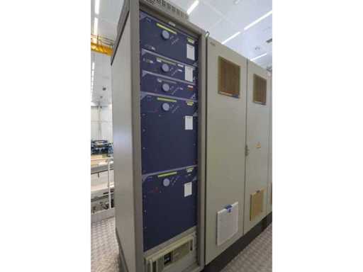 Type D350H.1, consisting of amongst others: retractable side panel, 7x “Ebara” dry pump type AAS200/100/70WN, 1x “Edwards” mechanical booster type EH 2600 IND, 5x “Trumpf” RF generator type PFG5000RF, 2x type PFG1000RF and 1x type PFG1600RF, 1X “Marx” transformer, 4x 2-door electrical switch cabinet, 3x i-chamber gas cabinet, 1x “Single” temperature controller type STO 1-24-24-D2/ZGD (2010) and 2x type STO 1-6-12-D0/D2 (2010), combined piping and steel structure with platform and stair, used floor space approximately 9000x8500mm