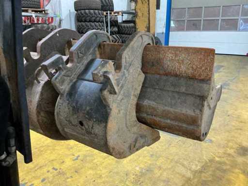 With 3x various excavator bucket; dozer blade 1350 mm; 2x double hydraulic connection; Slewing ring damaged