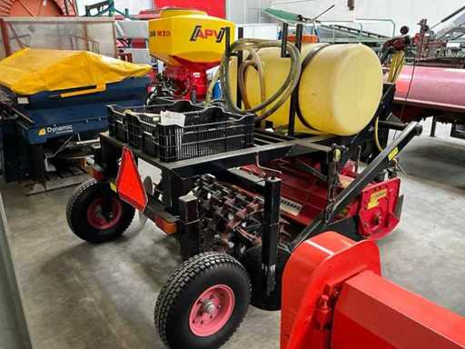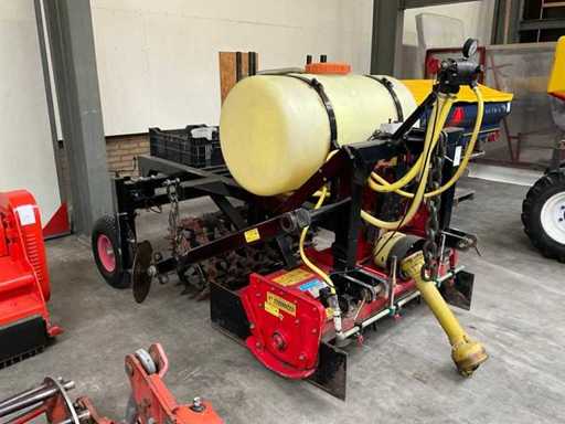 consisting of tiller, crumbling roller/packer, running wheels, spray boom with crop protection tank (300 Ltr), equipped with pump, control box, PTO, three-point connection,