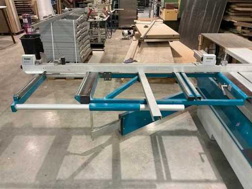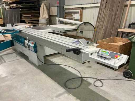 Equipped with digital control Siemens and tilting blade, capacity panel saw with scoring group: 3260x3000mm, complete with accessories including panel parts and various saw blades