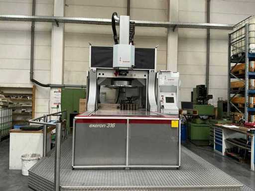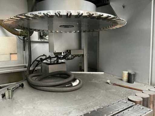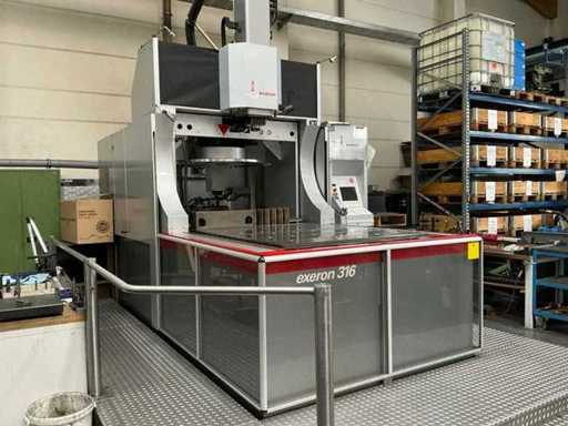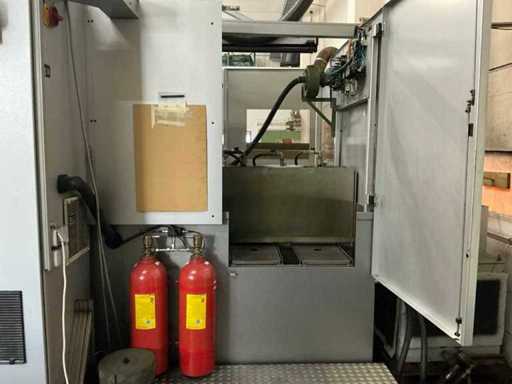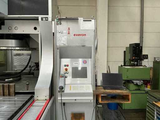 Control type EXERON MF10, optionally incl. 5 m³ dielectric (hazardous material transport), incl. TERMOGAMMA DG 27a T cooling unit, distance table/quill 250/1000 mm, pulse generator 100 A, autom. Chuck type 3R-Marco, 50-fold tool changer, permissible Load per magazine space 15 kg, container filling height 750 mm