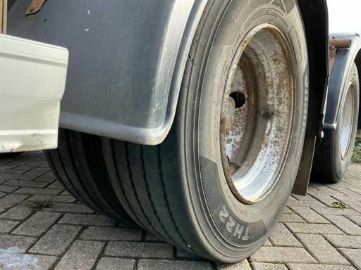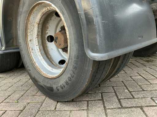 Mass of unladen vehicle 3990kg, payload 24010kg, Maximum mass 28000kg, wheelbase 575cm, 2nd axle is lift axle