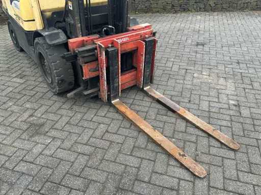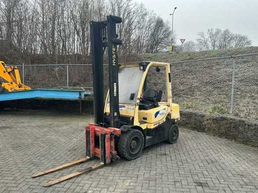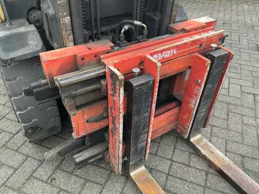 Equipped with: mini-lever control on armrest, tow bar, lighting, hydraulically adjustable forks, work lights, adjustable steering column, new battery.