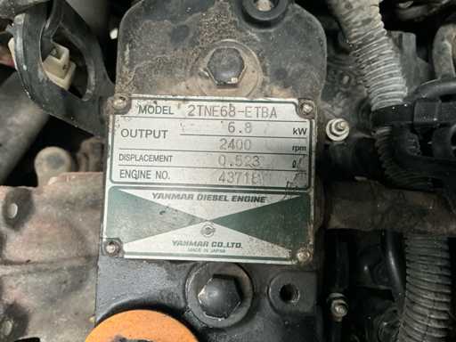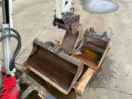 Equipped with: engine Yanmar 2TNV70, dozer blade, mechanical quick coupler CW05, 3 buckets- 1x banana bucket 250mm - cleaning bucket 800mm - excavator bucket 400mm, boom offset hydraulic, aux. Connections along boom, breaker function, Set pressure (bar) 160, pump type gear x 2, hydraulic flow (l/min) 10.7 x 2, hydraulic current auxiliary connection (l/min) 22, track frame adjustable from 680 mm to 900 mm,