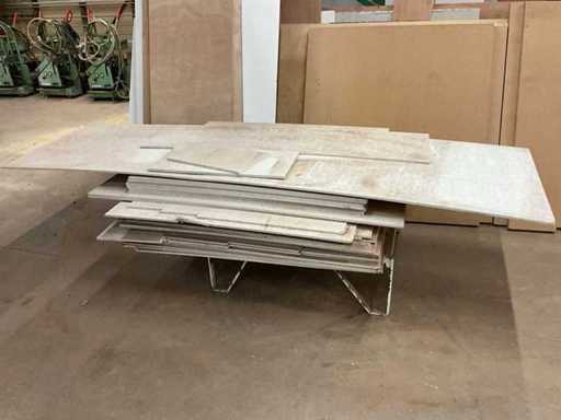 Equipped with: (10x) glass slide; Capacity per slide: 300kg, Maximum height: 1900mm; Including contents, consisting mainly of sheet material and insulation boards