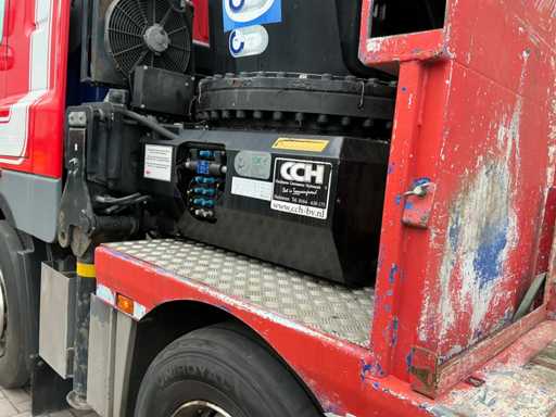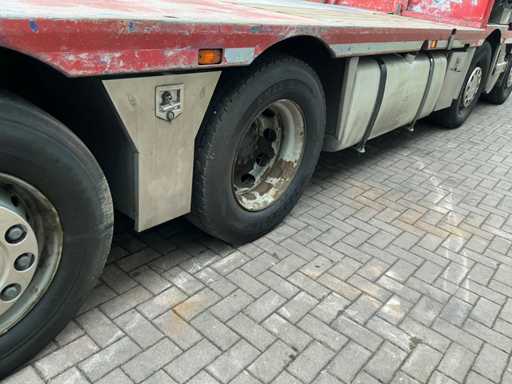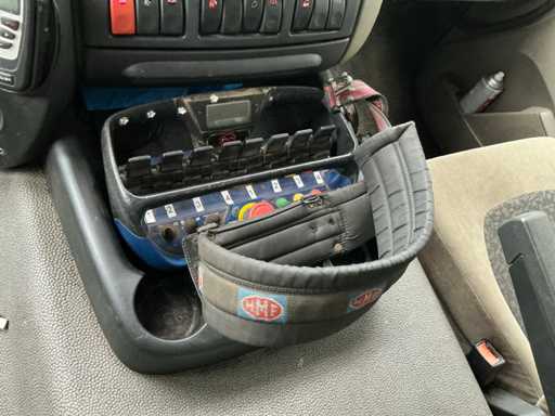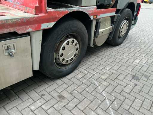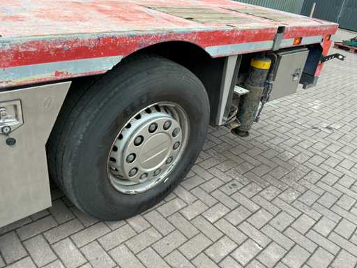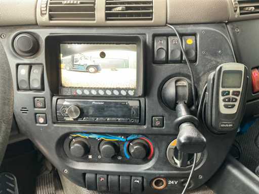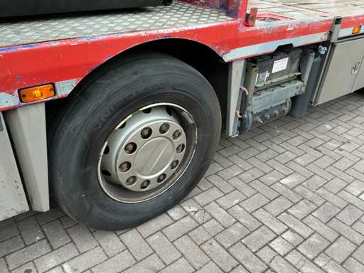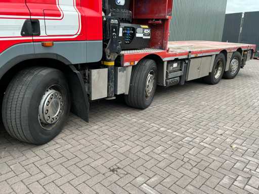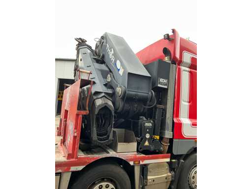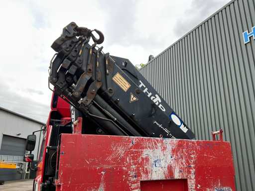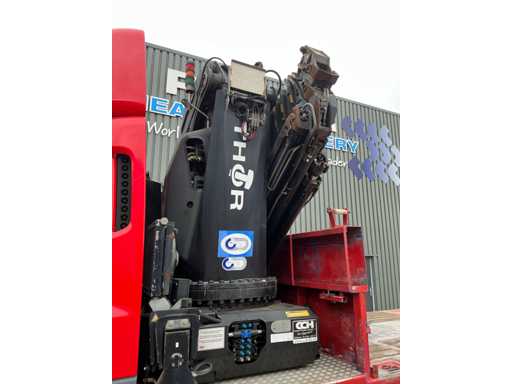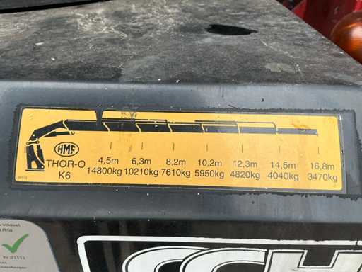 HMF Thor K6 remote controlled charging crane (including remote control with 2 batteries, without battery charger!)air-suspended rear axles, leaf-sprung front axles, 3 axles steered, dimensions of loading platform 6.3x2.55 meters, loading crane malfunction - legs do not go out.