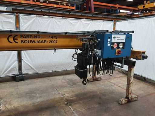 Equipped with wired remote control, powered trolley (Demag ame10dd), crane book available,