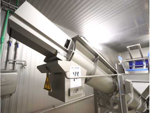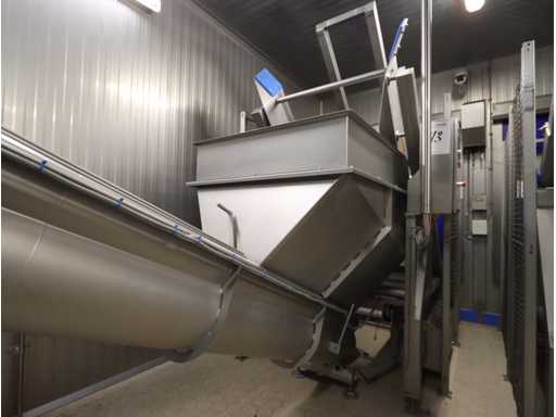 length 2000 mm, including elevator screw conveyor with receiving hopper, screw Ø 400 mm, screw length 4500 mm, output height 1600 mm, inlet opening bunker approx. 1100x1300 mm, without platform and stairs