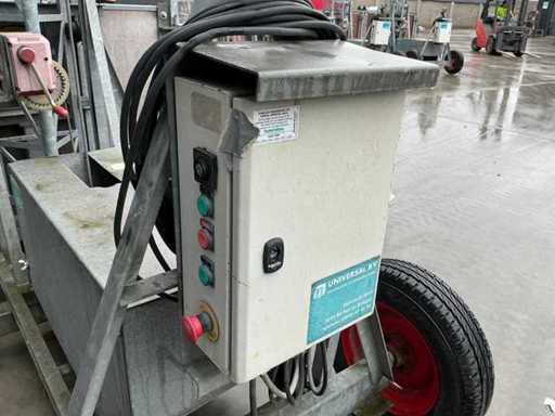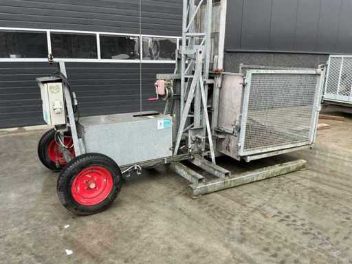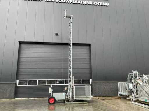 Base mast 600 cm; with extra 1x 150 cm mast part; equipped with ball coupling for tow bar; electrically powered; also equipped with a hand winch.