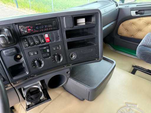 wheelbase 310cm, equipped with: 3 pedals, retarder, full air suspension, topline, Euro 4 V8 diesel engine, Jost sliding fifth wheel, Hypro bullbar, custom decorated interior, cupboard wall, parking heater, extra large diesel tank, documentation/papers
