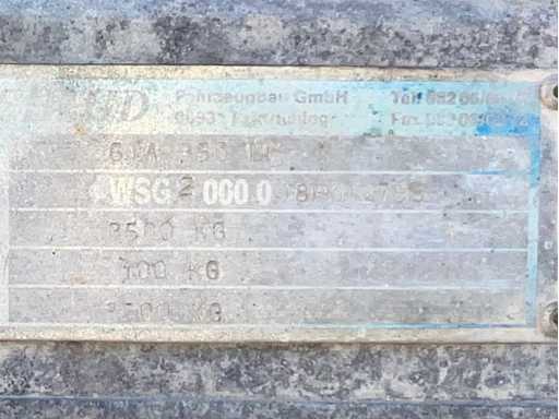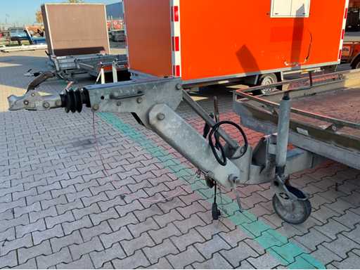length 5550 mm; width 2360 mm; height 2180 mm; galvanized steel frame; fixed ramps; binding eyes; 1x transport ramp for ramp is missing; frame end side bent; jockey wheel; overrun brake; (the buyer must provide a valid registration number when transporting by road; a 7 or 9 pin connection plug or adapter with cable (extension cord can be purchased on site for a fee); possibly extra light bar; German registration papers; certificate of conformity; (M-U9151)