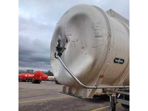 Belgian on-board documents, attention tank damage, aluminium tank superstructure on stainless steel chassis, Tare: 5170kg, GVW: 38000kg, TTM: 38000kg, Tank capacity: 32000L