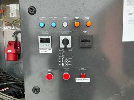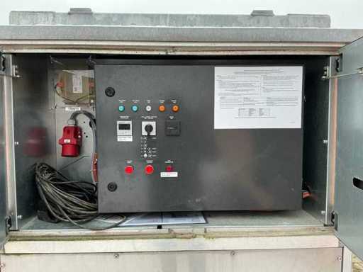 galvanized steel base; galvanized steel lifting frame; forklift fork slots; stainless steel housing; diesel fired; external fuel tank connection; consumption approximately 38 liters of fuel / hour; volume flow 24000 m3/hour; reading hours 4584 hours; traces of use; Working condition