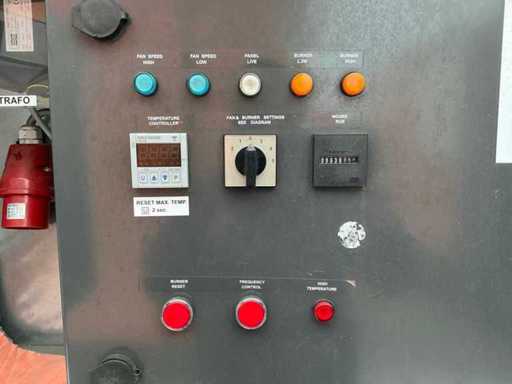 galvanized steel base; galvanized steel lifting frame; forklift fork slots; stainless steel housing; diesel fired; external fuel tank connection; consumption approximately 38 liters of fuel / hour; volume flow 24000 m3/hour; reading hours 8656 hours; traces of use; Working condition