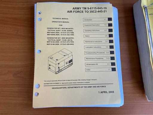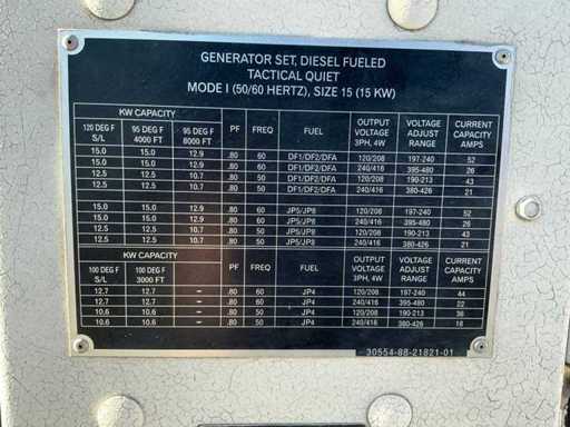 U.S Defense NATO standard, Tactical quiet, 120/208V 3Ph, 240/416V 3Ph, Equipped with copper earth rod