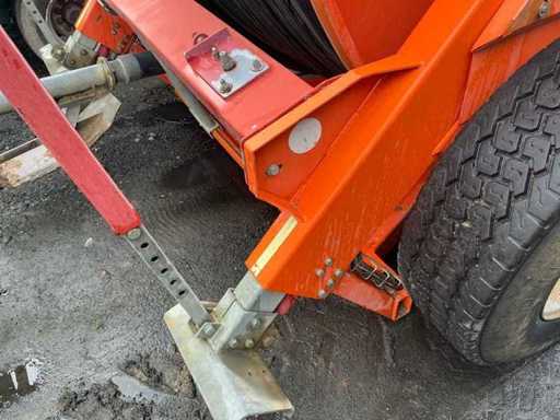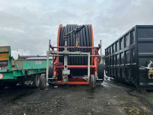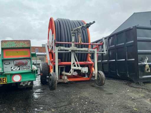 Professional irrigation reel from the brand Irrifrance, type OPTIMA 1055 VPS TTI, suitable for irrigation of agricultural plots, grassland and arable crops.
