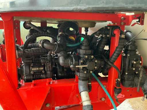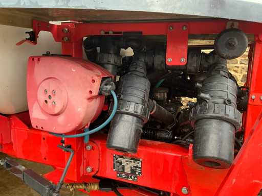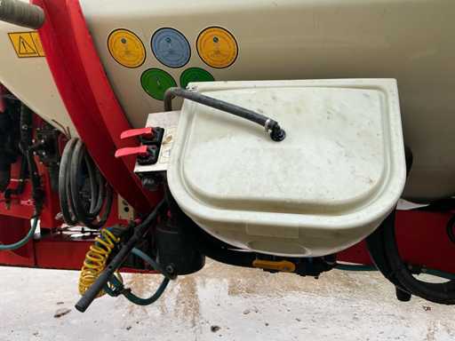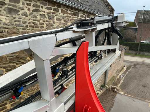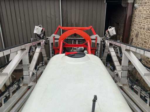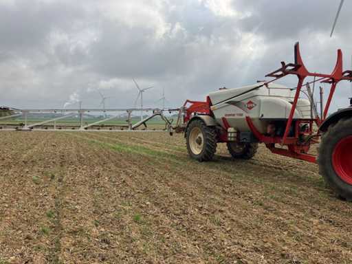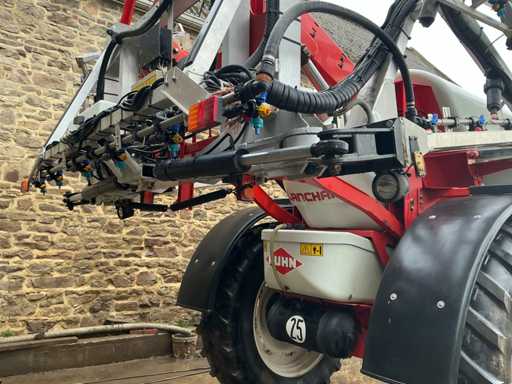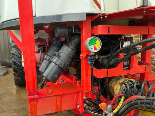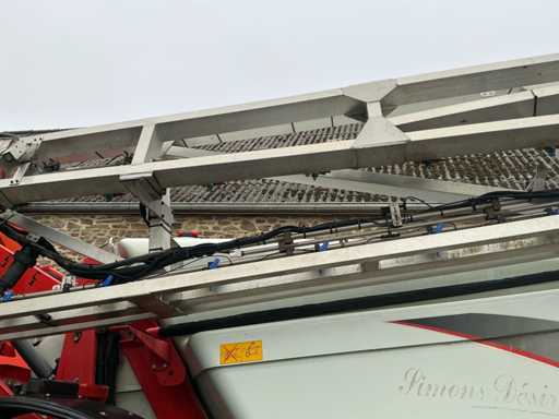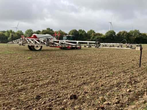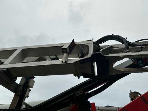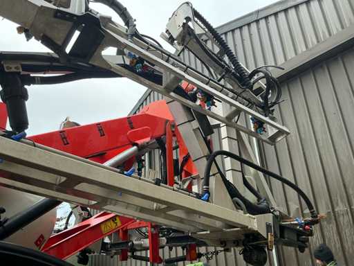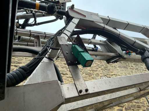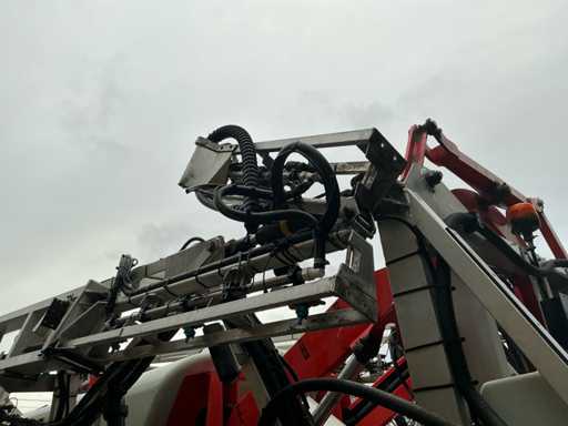 The machine features a 32-metre spray boom, supplemented by an additional 1-metre widened section on each side, increasing the overall effective working width and allowing larger plots to be treated more quickly.